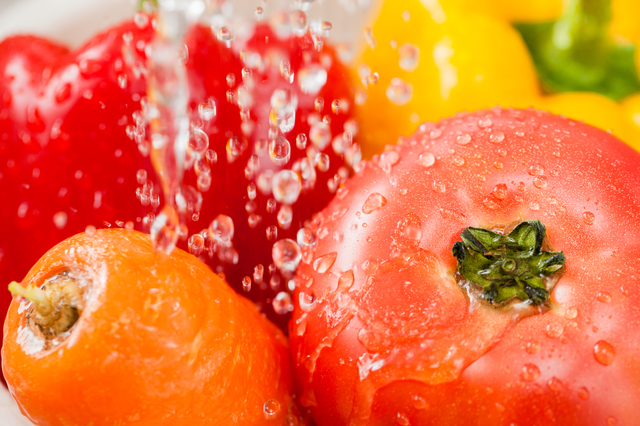 野菜などの仕入れ食材は、まず最初に土や汚れなどを十分に水洗いし、その後に殺菌力が高く残留物がなく安心安全な「オゾン水」で除菌しています。 オゾン水は高齢者施設や病院、保育園、学校給食などでも広く使われており安全性も高い除菌方法です。手荒れもせず安全です。